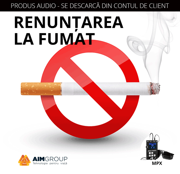Produs audio cu sugestii pozitive, sunete din natura și muzica de relaxare destinate sprijinirii lăsatului definitiv de fumat, prin creșterea încrederii în propria voință, îndreptarea firească și ușoară către renunțare totală și formarea convingerilor profunde care stau la baza adoptării unor noi obiceiuri sănătoase de viață.